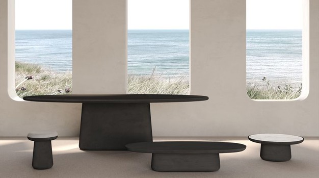 Het nieuwe Belgische merk ontwerpt meubels geïnspireerd op organische vormen en getextureerde oppervlaktes die men treft in de natuur. Het materiaal waaruit de collecties gemaakt worden bestaat uit een samenstelling van mineralen, kalk en mortel. Omdat elk stuk met de hand gemaakt wordt is ook elke tafel anders, waardoor je steeds van een uniek ontwerp kunt spreken. De gebogen en ronde details met zijn imperfecte oppervlakteafwerking moet je dan ook zien als een eerbetoon aan de natuur.![]()