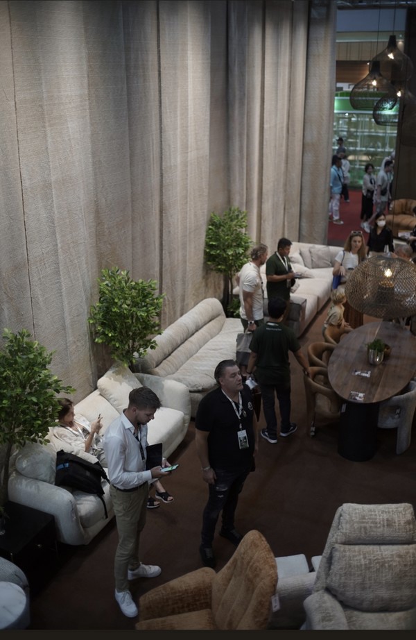Een blik in de showroom van Asiades op de Indonesia International Furniture Expo 2023.