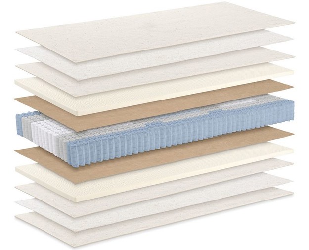 De overige materialen die in de matrassen zijn verwerkt, bestaan uit kokos, jute, natuurlatex, wol, katoen en viscose. De matrassen zijn voorzien van een ingenaaid geweven label, een lederen label en geborduurde handgrepen.
