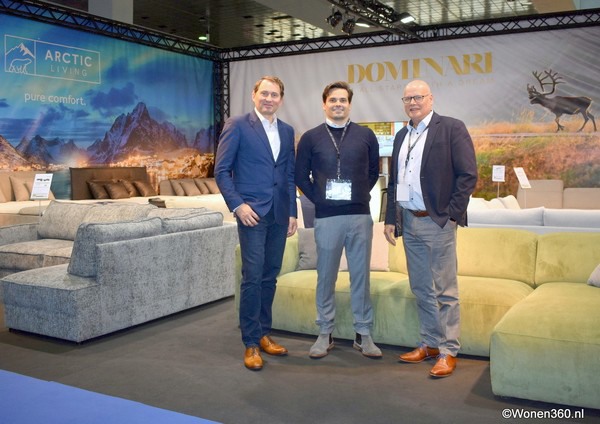 Rolf Das (rechts) met zoon Robbert-Jan van Arctic Living en Donatas Sventickas van de Dominari Gruppe op Meubelbeurs Brussel 2022.