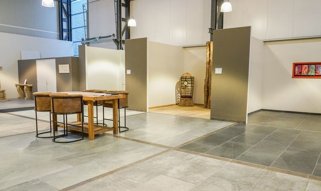 Naast de vestiging in Venlo (die door de brand getroffen is) heeft Nibo Stone ook de beschikking over een complete showroom in Vianen van 2.600 m2. Rianne benadrukt dat deze toonzaal gewoon open is. "Er is geen enkele belemmering om onze showroom in Vianen te bezoeken." In de tegel-showroom in Vianen vindt de klant een uitgebreid assortiment natuursteen en keramische tegels. Alle tegels liggen op grote beloopbare oppervlaktes voor een goede kijk op onze collectie tegels.