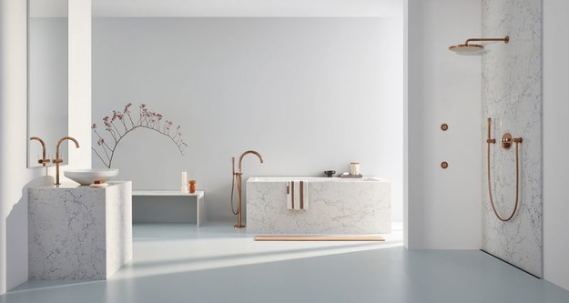 Caesarstone, ontwerper en fabrikant van oppervlakken in kwarts en porselein, en GROHE onthulden de samenwerking op Salone del Mobile. Met de GROHE SPA Atrio Private collectie kunnen architecten en ontwerpers kiezen uit een zorgvuldig samengesteld badkamerportfolio en tegelijkertijd oplossingen op maat bieden die aansluiten bij de behoeften van klanten.
