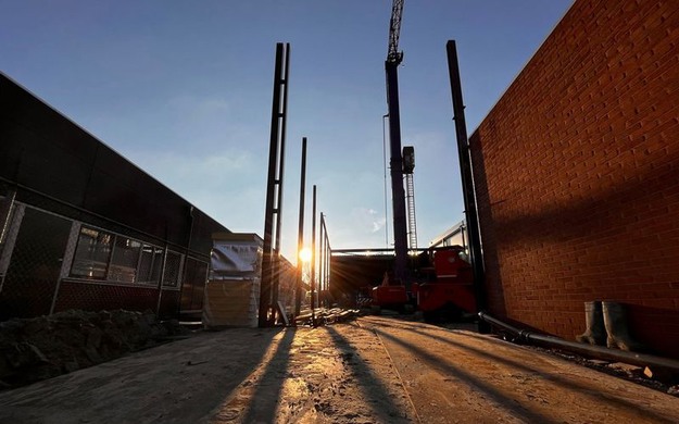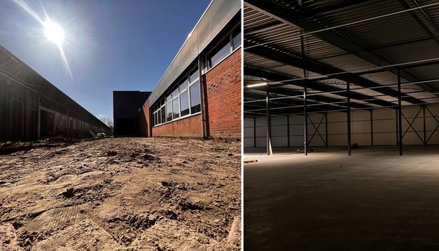 In medio oktober zijn ze begonnen met het verwijderen van de klinkers en tegels. Daarna zijn ze meteen begonnen met de voorbereidingen van het nieuwe magazijn om zo stap voor stap een stukje dichter bij extra opslagruimte te komen. Niet alles is van een leien dakje gegaan, zo zijn er enkele vertragingen opgelopen tijdens het opbouwproces, waar het Nederlandse weer ook niet bij heeft geholpen.