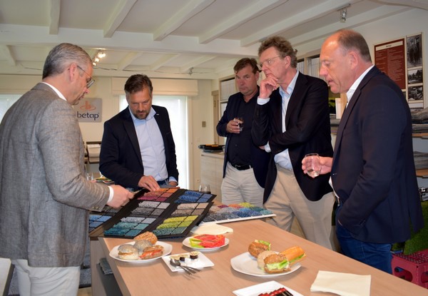 Ernest Pleijsier van Betap (links) in gesprek met een delegatie van Hebeta, met v.l.n.r. Johan Kleppe, Hans Vinke, John Jaakke (ook van Betap) en Gerrit Beens.