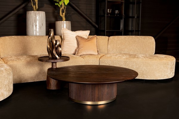 "De meubellijn is ook dit seizoen uitgebreid. Het assortiment van comfortabele banken is verrijkt met nieuwe sofa’s, waarvan twee modulebanken verkrijgbaar in meerdere stoffen. Ook luxe eetkamerstoelen en chique bistro- en salontafels met marmeren blad komen nieuw binnen. Deze laatste zijn een waardevolle toevoeging aan de bestaande tafellijn. Stoere bijzettafeltjes en sfeervolle XL-lampen van marmerlook glas mogen niet ontbreken en dragen onherroepelijk bij aan het gevoel van luxury living."