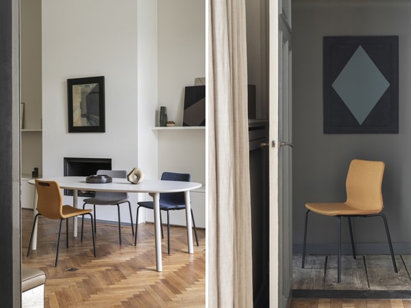 In 2023 brengt Bulo de VVD collectie buiten het kantoor en binnen in het dagelijkse leven met de VVD Bistro chair, een speelse en praktische variant op iconische VVD bureaustoel. De stervoet op wieltjes werd vervangen door pootjes in hout of metaal en de ergonomische zit werd gestoffeerd in een selectie van 12 hoogwaardige stoffen naar keuze. Terwijl de typerende vormen van de originele collectie nog steeds herkenbaar aanwezig zijn, werd er toch gewerkt met rondere vormen die de collectie een eenvoudig meer sensueel karakter geven. De ontwerper werkt in deze collectie voor het eerst ook met zorgvuldig uitgekozen kleuren, afgeleid uit de natuur en toegepast op een gedesatureerde manier. Ik wilde een collectie creëren die de huiselijke- en kantooromgeving naadloos in elkaar laat overlopen. Het is een zeer jonge, frisse en speelse collectie ook perfect past in een horecaproject of zelfs outdoor. - Vincent Van Duysen De VVD Bistro tafel en stoel zijn ook beschikbaar in gerecycleerd polypropyleen, een kunststof gemaakt van industriële reststoffen die verzameld worden, vermalen tot korrels, gesmolten en dan opnieuw gebruikt met pigment toevoeging. De gerecycleerde grondstof maakt het aanzienlijk moeilijker om exacte gewenste eindkleur te realiseren, een proces waarin Bulo doorheen de jaren een uitzonderlijke expertise verworven heeft.