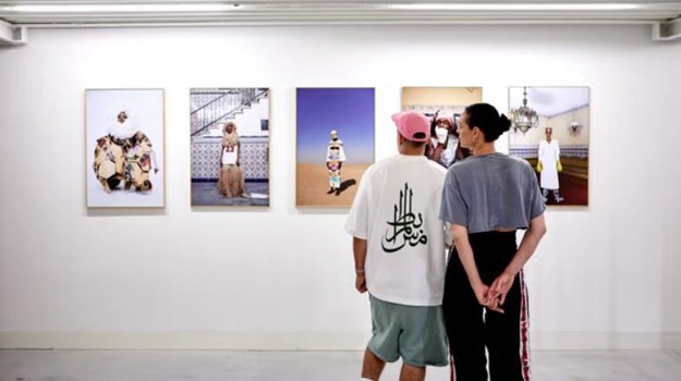 De tentoonstelling van de Belgisch-Marokkaanse fotograaf Mous Lamrabat bij MAD Brussels baadt in een kleurrijke scenografie van de Franse ontwerper Justin Morin.