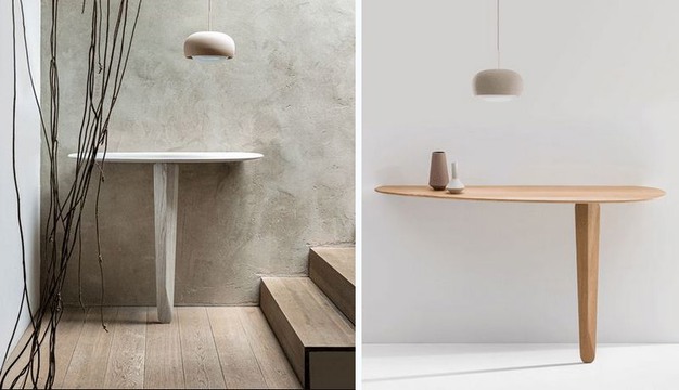 De Kuyu Console tafel van meubelfabrikant Zeitraum definieert een minimalistisch samenspel tussen wand en tafel. De consoletafel is ontworpen door de Formstelle designstudio.