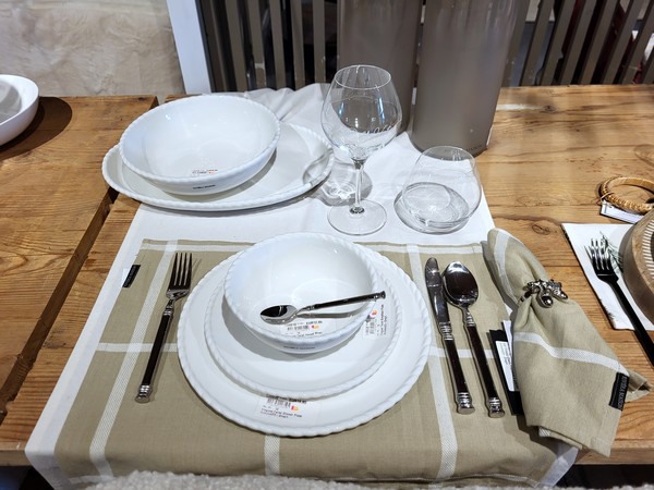 Nieuw klassiek servies met opstaande kabelrand in de kleur wit. Mensen hebben meer behoefte aan lichte kleuren.