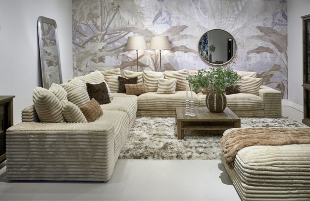 Rivièra Maison heeft met Anna Nooshin (een Nederlands-Iraans ondernemer, presentatrice en modeblogger), goed voor bijna 1 miljoen volgers op Insta, deze modulaire, organische bank ontwikkeld. "Als 16-jarige heeft ze als vakantiebaantje nog schoongemaakt in onze toenmalige showroom in Aalsmeer, vertelde ze. Ik wist het niet meer", zegt Henk.