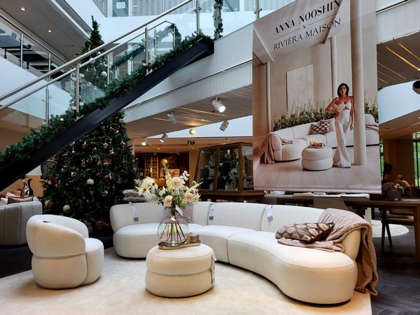 Rivièra Maison heeft met Anna Nooshin (een Nederlands-Iraans ondernemer, presentatrice en modeblogger), goed voor bijna 1 miljoen volgers op Insta, deze modulaire, organische bank ontwikkeld. "Als 16-jarige heeft ze als vakantiebaantje nog schoongemaakt in onze toenmalige showroom in Aalsmeer, vertelde ze. Ik wist het niet meer", zegt Henk.