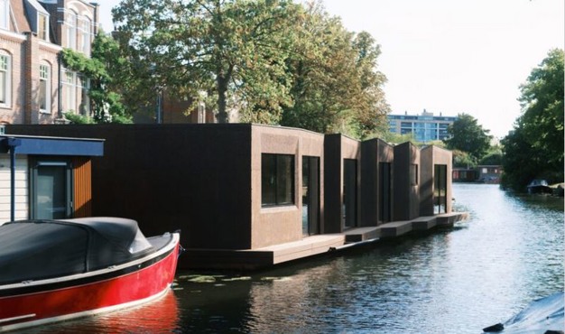 In een bocht van de gracht ligt een ark die zelf wel de bocht om lijkt te gaan. Aarnoud en Nienke wilden allesbehalve de gevreesde rechthoekige doos. Dat is ze gelukt: Ark Mans is ‘out of the box’ zowel qua vorm als materiaal. Mans bestaat uit in zaagtand naast elkaar geplaatste modules, in vorm volgend aan de gevels van de huizen in de straat. Zo heeft ieder raam het mooiste uitzicht.