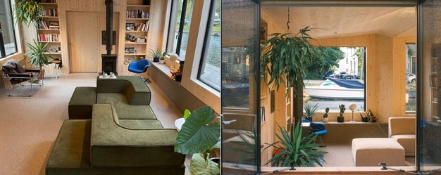 De verkaveling in de polders uit de buurt waren inspiratie voor verkaveling op de ark, waarin elke ‘kavel’ aan boord zijn eigen functie heeft. Binnen een ‘kneuterige’ zitkuil als woonkamer, waarbij het onderwatergedeelte is bekleed met tapijt. Zo ben je je constant bewust van de waterlijn. Zeker wanneer je in de brede vensterbank zit.