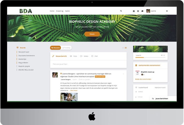 Biophilic Design Academy is een online lidmaatschaps-platform voor iedereen die affiniteit heeft met biophilic design. Met een focus op het herstellen van ons contact met de natuur, streeft BDA ernaar om biophilic design de nieuwe ontwerpstandaard te maken voor alle gebouwen en hun inrichting in Nederland. BDA biedt een levendige online omgeving waar liefhebbers, experts, geïnteresseerden, kenners en nieuwsgierigen samenkomen om elkaar te inspireren, kennis op te doen en te delen, en samen bij te dragen aan een betere wereld.