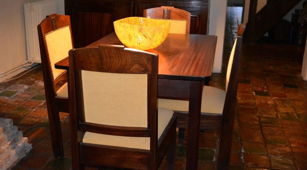 Het echtpaar Verduijn uit Oentsjerk kijkt de komende twee maanden uit op een behoorlijk kale woonkamer. Alle Amsterdamse School-meubels en accessoires staan dan te pronk in de Schierstins, samen met onder andere een Bruijnzeel-keuken uit 1937. Deze expositie kan gecombineerd worden met ´Schamel wonen´ in de wâldhúskes van De Sûkerei in Damwâld, met een combikaart.
