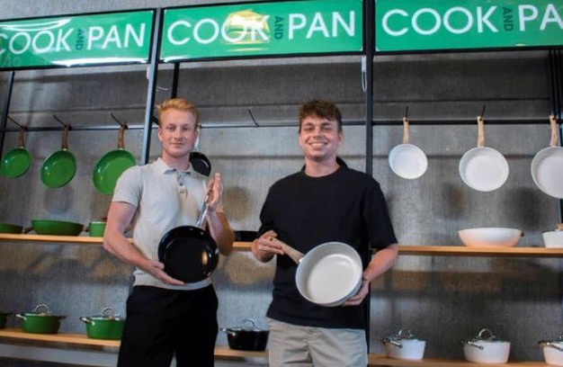Cook and Pan, een start-up van twee jonge vrienden Teun (22) en Melvin (25), introduceert een moderne lijn pannen met een niet-giftige antiaanbaklaag. Iedere collectie vormgegeven om een moderne uitstraling te bieden die in elke keuken past. Of het nu gaat om een strakke, minimalistische stijl of een gedurfde, eigentijdse look, deze pannen zijn ontworpen om een statement te maken.