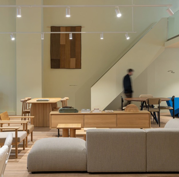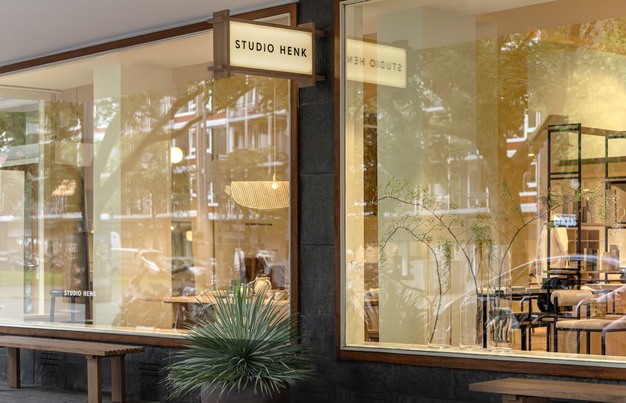 In de Studio HENK winkel worden klanten geïntroduceerd met de duurzame missie van het merk. Zo streven zij ernaar de industriestandaarden te veranderen met het ontwerpen van circulaire meubels die een positieve invloed hebben op mens en milieu. Hiermee moedigen ze klanten aan om diezelfde bewuste keuzes te maken bij het vernieuwen van hun interieur. Het design van de winkel is een weerspiegeling van deze boodschap en is geïnspireerd op kleuren en elementen uit de natuur, zo creëert Studio HENK een gevoel van kalmte bij binnenkomst.