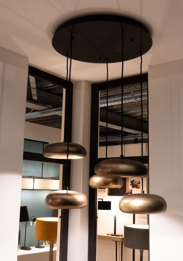 "Ook tijdens deze Experience-dagen zullen wij aanwezig zijn met diverse door ons ontworpen noviteiten", vervolgt Martijn. "De collectie in de oud messing-kleur met een stoere uitstraling is uitgebreid met verschillende modellen staande en hangende verlichting."