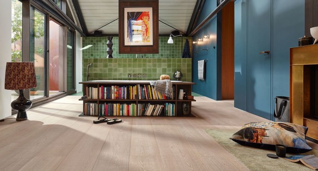 Dankzij de AquaSafe-plaat en impregnering van de randen is de innovatieve Lindura houten vloer in kasteelplankenformaat bovendien meer dan 24 uur waterbestendig. In de natuurgeoliede versie kan Lindura extra worden beschermd tegen vocht door een tweede laag olie aan te brengen. Zelfs MeisterParquet. longlife is voorzien van de AquaStop impregnering van de randen en is daarmee officieel vier uur watervast (m.u.v. PS 500). Zo staat niets het leggen van houten vloeren in de badkamer in de weg.