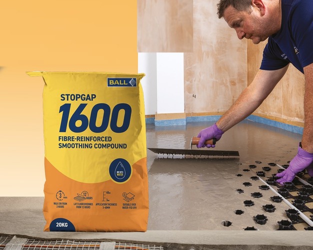 F. Ball, de Britse fabrikant van egalines en vloerlijmen, lanceert Stopgap 1600, een nieuw sneldrogend, met vezels verrijkt egaliseermiddel dat speciaal is ontwikkeld voor gebruik op vloerverwarmingen.