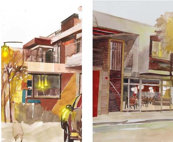 “Licht is over ’t algemeen een grote inspiratiebron voor mij. Ik vind het fascinerend om te observeren hoe zonlicht interactie heeft met gevels van gebouwen en hoe gebouwen eruitzien als de binnenverlichting aan is. In deze serie voor Foscarini’s “What’s in a lamp?” project wilde ik de binnenruimtes verkennen en de impact van de lampen op het transformeren van de sfeer benadrukken. Mijn doel is om de plekken waar ik van houd te schilderen en de schoonheid die ik daarin zie vast te leggen.”