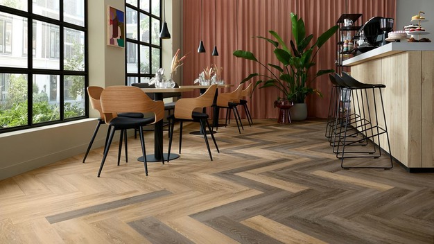 De zes kleuren en het dessin van de Authentic Parva Oak XL zijn bekend van onder meer de mFLOR Authentic Oak XL (grote stroken) en de Parva Oak Chevron (Hongaarse en Weense punt) collecties. Of je nu kiest voor de klassieke eikenhouttinten, een meer vergrijsde of juist een warme roodbruine variant, deze XL-visgraat is in iedere kleur een blikvanger in het interieur.