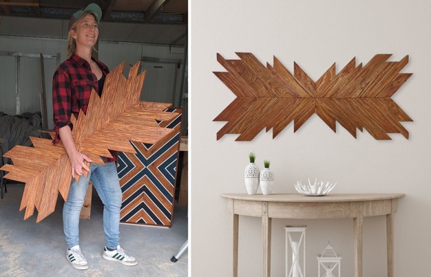 Hoewel Nadia pas enkele maanden bezig is met het creëren van decoratieve wandpanelen, heeft ze al een aanzienlijk collecties gemaakt en voert ze maatwerkprojecten uit. "In Amerika is 'Wooden Wall Art' op dit moment aan het opkomen", vertelt Nadia. "De mogelijkheden van de wandpanelen zijn oneindig en ik merk nu al dat ik nog veel kan ontdekken in mijn eigen werkplaats. Dat toekomstperspectief laat mijn creatieve hart harder kloppen."