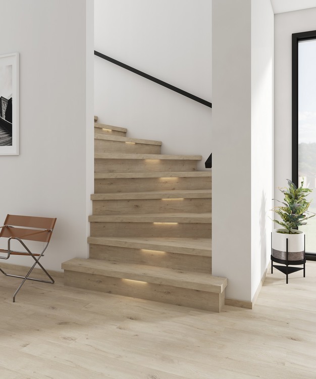 De trappen zijn verder uit te breiden met ingebouwde ledverlichting, wat zowel een streling voor het oog als ontzettend praktisch is. Daarnaast kan men bijpassende vloeren, plinten of andere accessoires kiezen. Met de COREtec®-onderhoudskit houdt men de trap in topvorm.