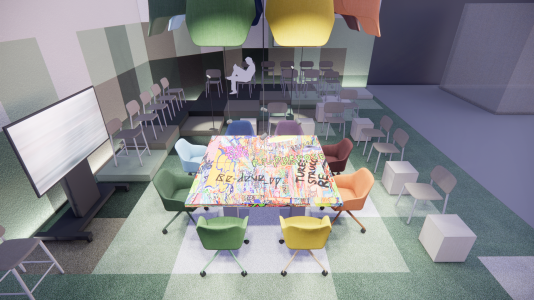 CBRE creëerde Square One, een decorontwerp in opdracht van Workbrands om de Workspace Design Talks te hosten. Het ontwerp van CBRE fungeert als achtergrond voor veel verschillende discussies over werkplekstrategie, cultuur en design, geïnspireerd op het oude stadsplein in Griekenland, de Agora. Om naadloos aan te sluiten bij de missie en operationele aanpak van Workbrands daagden zij CBRE uit om de gehele opzet circulair te ontwerpen.
