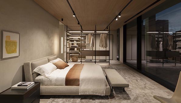 Door natuurlijk licht te combineren met de schittering van LED-verlichting, met travertijnen betegelde vloeren en de warme tinten van textuurwanden en metallic verven, benadrukt de ruimte de luxueuze kwaliteit van de keukens, boekenplanken, kasten, banken en meubelcollecties van Molteni&C. De flagship store biedt een uitnodigende en hoogwaardige omgeving waar klanten de gelegenheid hebben om de prachtige meubelstukken van Molteni&C te ontdekken en te ervaren.