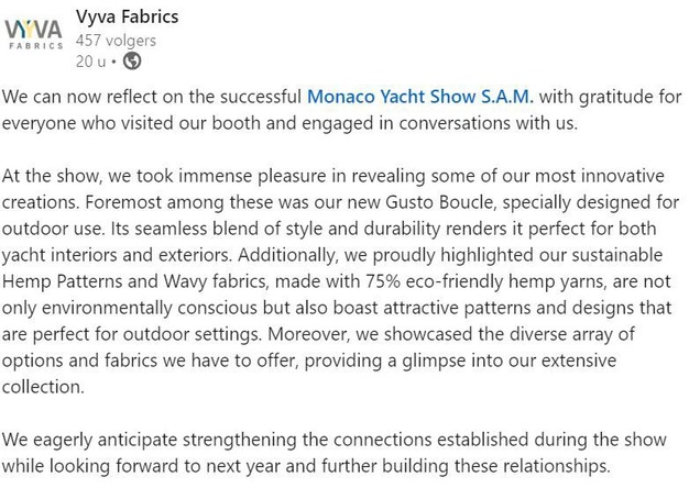 Terugblik Vyva Fabrics op Monaco Yacht Show