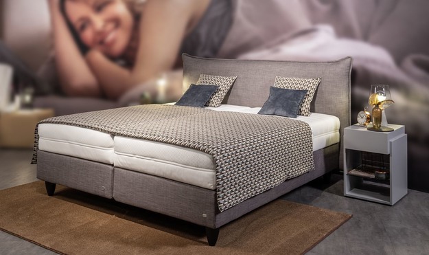 "Gewoonweg ontspannen en alles vergeten. Voorgeconfigureerd in 12 aantrekkelijke stoffen, met een Gelaxet-topper en een met stof beklede boxspringmatras, verandert CUSHIDO een slaapkamer in een handomdraai in een oase van welzijn. Met de twee naar voren verstelbare hoofdkussens geniet je van het beste comfort in elke situatie en positie - zo mooi kan ontspanning zijn."