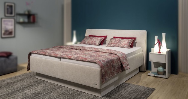 "Een bed moet praktisch zijn en ook visueel indruk maken. Ons gestoffeerde bed MATERA voldoet aan beide criteria. Het beschikt over een ruime, geventileerde opbergruimte en valt op door zijn stijlvolle en tijdloze ontwerp. Dankzij de dwarsopening is de opbergruimte aan beide zijden comfortabel toegankelijk en een betrouwbare gasveer maakt de bediening kinderspel. Ontworpen in de stof naar keuze uit onze complete stoffencollectie en uitgerust met de matras die perfect bij je wensen past, is dit bed je ideale slaapplek."
