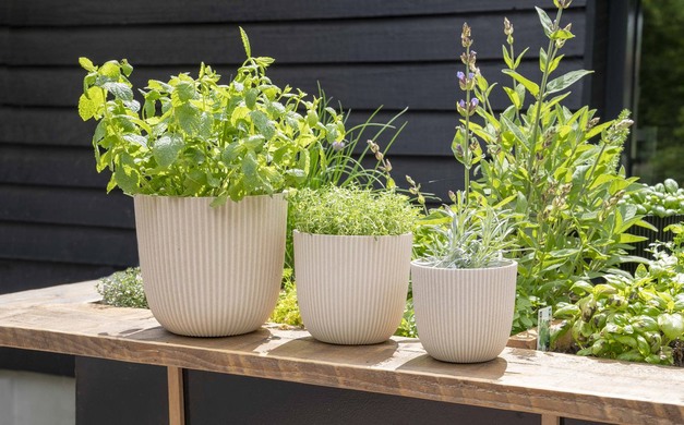 De beige ‘Made with’ pot is gemaakt met zaagsel en de zwarte met gerecycled textiel: oude kleding hoeft niet verbrand te worden, maar krijgt een nieuw leven. Op deze manier laat elke eco-vriendelijke bloempot met zijn kleur de oorsprong zien. Het design van de lichtgewicht Groove potten is geïnspireerd op de natuurlijke groeven in stenen en bergen als eerbetoon aan de wonderen van de natuur.