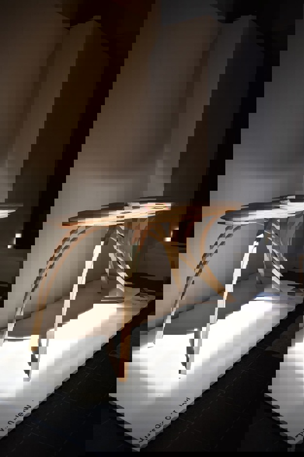 Het bureau bestaat uit een ovaal blad dat van iepen is gemaakt. Het onderstel bestaat uit twee overkruisde delen die ieder uit vier rondingen bestaan, twee buitenrondingen en twee binnen rondingen. De rondingen zijn gemaakt van gelamineerd Amerikaans essen. De vormgeving en naam zijn geïnspireerd door het bijzettafeltje van Carlo Bugatti.