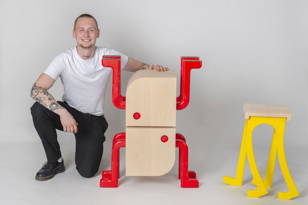 Bouwen Op Benen, een concept van ontwerper Noa Olsthoorn. Een kast met gebogen vormen op benen in een brutale kleur. Een basis die de vrijheid biedt aan de gebruiker om zelf naar wens te bouwen.