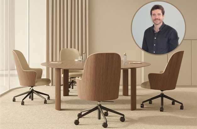 Joaquín Hueso en de nieuwe Aleta Executive stoel van Viccarbe.