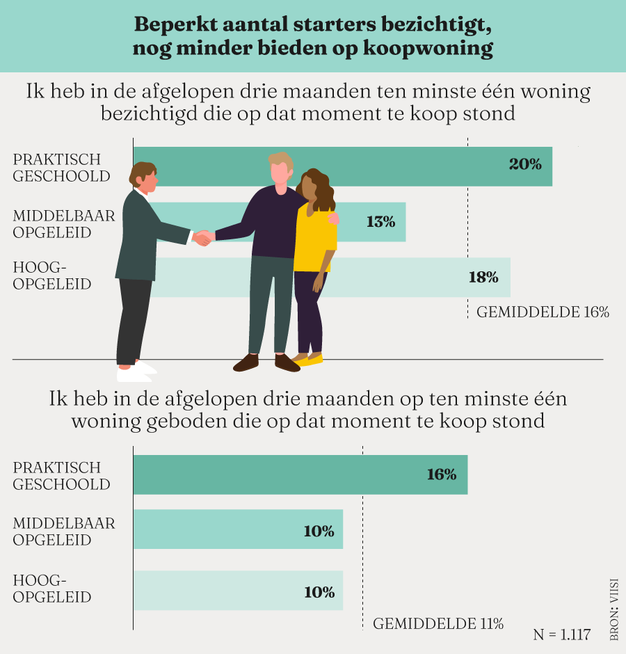 Als belangrijkste reden voor de huidige malaise onder starters op de woningmarkt noemt maar liefst 37 procent van de ondervraagden de hoge huizenprijzen. Politiek beleid (dertien procent) en woninginvesteerders (tien procent) volgen op gepaste afstand, maar ook de hoge inflatiecijfers en duur huren (beide negen procent) worden vaak aangehaald.