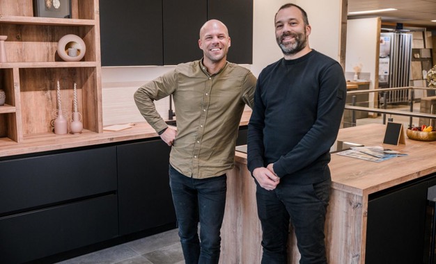 De neven Cees Bergman (links) en Michel Matla (rechts) openen op woensdag 1 november een Küchen-Dump in Woerden.