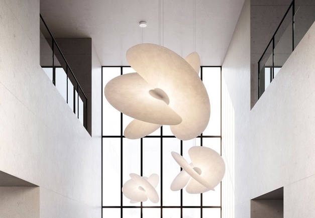 De Levante, ontworpen door Marco Spatti, is een kroonluchter die in de ruimte lijkt te zweven en wordt gekenmerkt door de kruising van drie grote waaiers - gemaakt van een materiaal wat lijkt op rijstpapier. Met magneten bevestigd aan de centrale kern die de lichtbron bevat, zijn ze in staat om licht op een uniforme manier over oppervlakken te verspreiden.