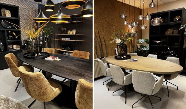 Door de gehele showroom van 1000 vierkante meter is één stijl terug te vinden: Hotel Chique. In verschillende kamers wordt dit gepresenteerd. "Vroeger kon je vijf verschillende sferen presenteren", blikt Jelle terug, "maar tegenwoordig kan dat niet meer. Wil je de consument verleiden om naar binnen te stappen, dan moet je stijl en uitstraling heel duidelijk zijn."