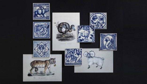 Moooi en Royal Delft breiden gezamenlijk de collectie Extinct Animals uit. Met de acht verschillende decoratieve Delfts Blauwe tegels kun je eigen verzameling Extinct Animals creƫren.