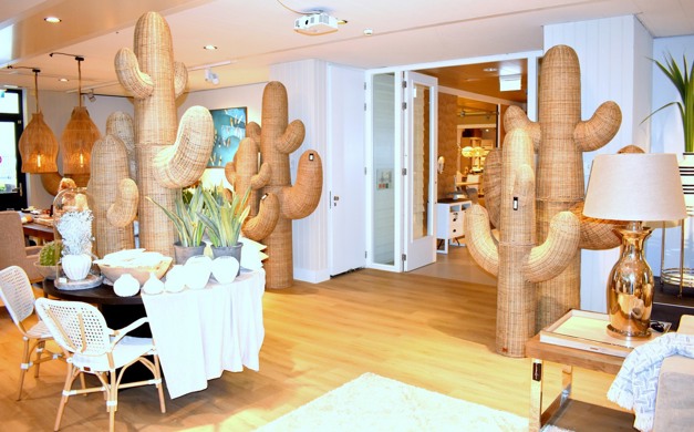 Een van de lente- en zomerthema's van 2024 heet Palm Springs en ziet er beachy uit, met opvallend veel lichte kleuren en vooral ook veel lichte houtsoorten. Grote rattan cactussen heten bezoekers welkom, waardoor je gelijk in zomerse sferen wordt gebracht. "Het wat sombere economische klimaat en de vele negatieve gebeurtenissen in de wereld roepen om vrolijkheid en optimisme in het interieur. Dat kenmerkt onze collectie. Vandaar dat de nadruk ligt op natuurlijke kleuren; die trend was vorig jaar al ingezet en zet zich nu door in onze collectie."