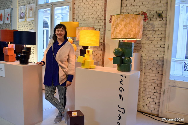 Zo is Inge Simonis na de coronacrisis gestart met het boetseren van lampen. Haar ‘squares and triangles’-collectie is in verschillende kleuren beschikbaar, met bijpassende speciaal uitgekozen lampenkappen. Ook maakt ze tafels en plantenpotten in hetzelfde design.