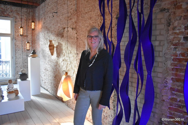 Marjan Veltkamp van Fields vertelde enthousiast over de collectie acoustische objecten. Haar passie op dit moment: projecten op maat. “Ik kijk goed naar wat er al is en maak daar een aanvulling op. Ik wil mensen blij maken, want daar word ik ook blij van,” zegt Marjan.