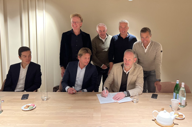 CEO Hugo Eijkelkamp zet, in het bijzijn van een delegatie van Nobel Capital Partners en de Comafin Groep, zijn handtekening onder de overeenkomst.
