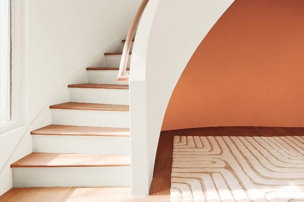 'De perfecte sfeerzetter om zowel kalmerende als energieke effecten in huis te creƫren. Oranje combineert het vrolijke optimisme van geel, naast de levendigheid en kracht van rood. Het resultaat is een warme en uitnodigende kleur die gevoelens van geluk, positiviteit en energie kan oproepen', zegt Benjamin Moore.