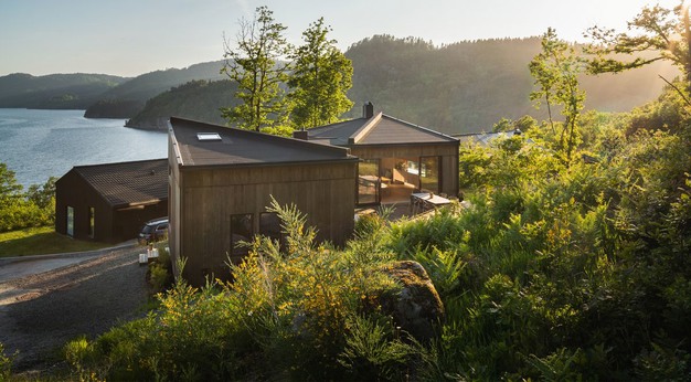 Aan de ingang van Grønsfjorden, in Zuid-Noorwegen, beschut tegen de sterke winden aan de kust bij Lindesnes, ligt een afgelegen hut. Bijna volledig afgewerkt in hout, zowel in het interieur als met zijn Kebony houten buitenbekleding, is het natuurgerichte zomerhuisje een welkome toevluchtsoord geworden van de drukte van het dagelijkse leven.