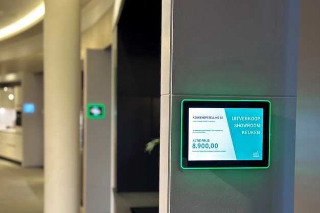 Het DPK systeem, dat staat voor Digitaal Product Kennissysteem, omvat maar liefst 60 strategisch geplaatste monitoren in de showroom. Deze monitoren tonen op het juiste moment en op de perfecte locatie gedetailleerde product- en prijsinformatie van de tentoongestelde keukens. Wat het systeem echt uniek maakt, is dat de getoonde informatie real-time kan worden aangepast op basis van de vragen en behoeften van de consumenten die de showroom bezoeken.