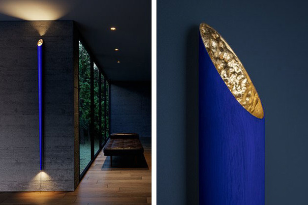 Wat Cono nog specialer maakt, is de keuze van de afwerking - altijd handgemaakt. Deze combineert een heldere blauwtint met het goudkleurige blad dat het onregelmatige oppervlak aan de binnenkant van de lamp bedekt.